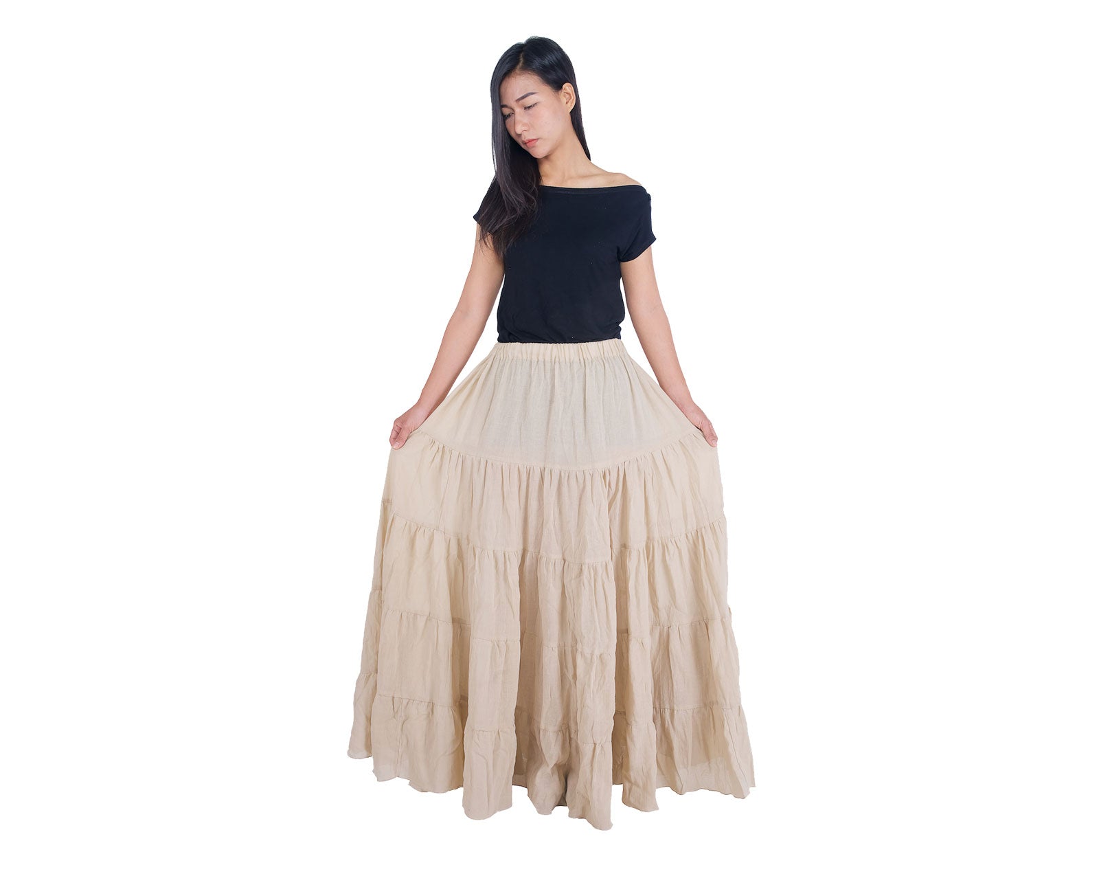 BEIGE COTTON MAXI RUFFLE SKIRT