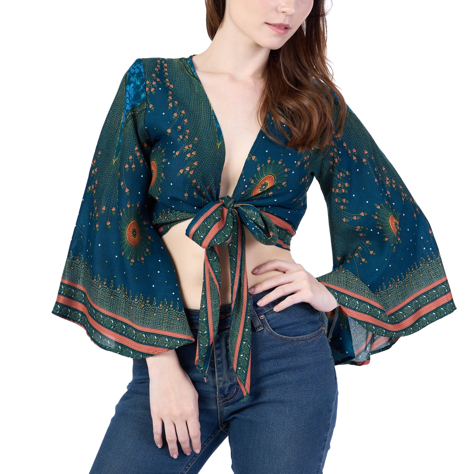 Indulge in bohemian elegance with our versatile women's wrap top. Handcrafted with a chic and alluring design, this handmade rayon boho top offers infinite styling possibilities. Whether you opt for a front or back tie, wrap it around, or infuse your own distinctive flair, this top is guaranteed to become a beloved staple in your wardrobe during every summer and hot weather season.