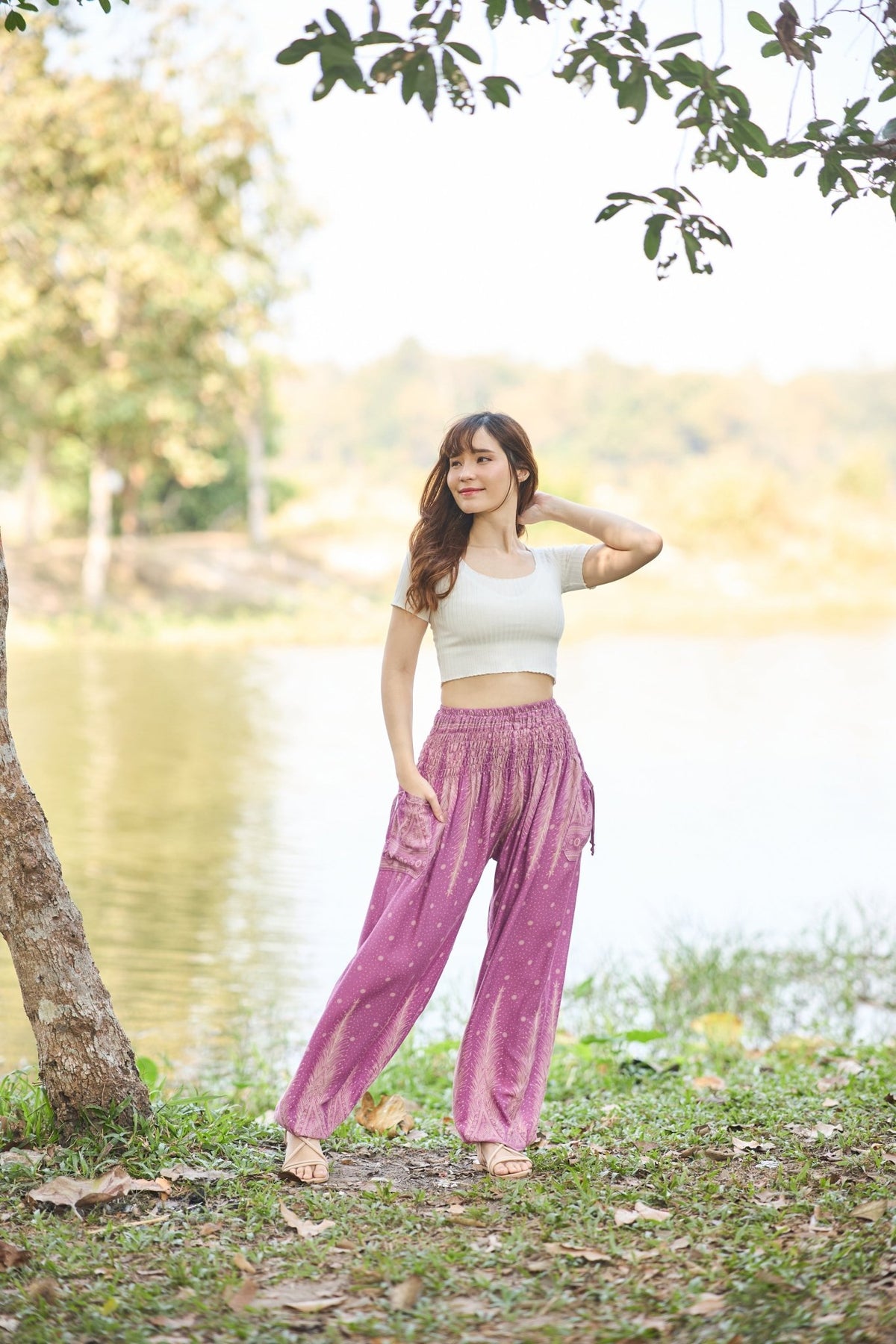 - Lannaclothesdesign Smocked Waist Boho Pants
