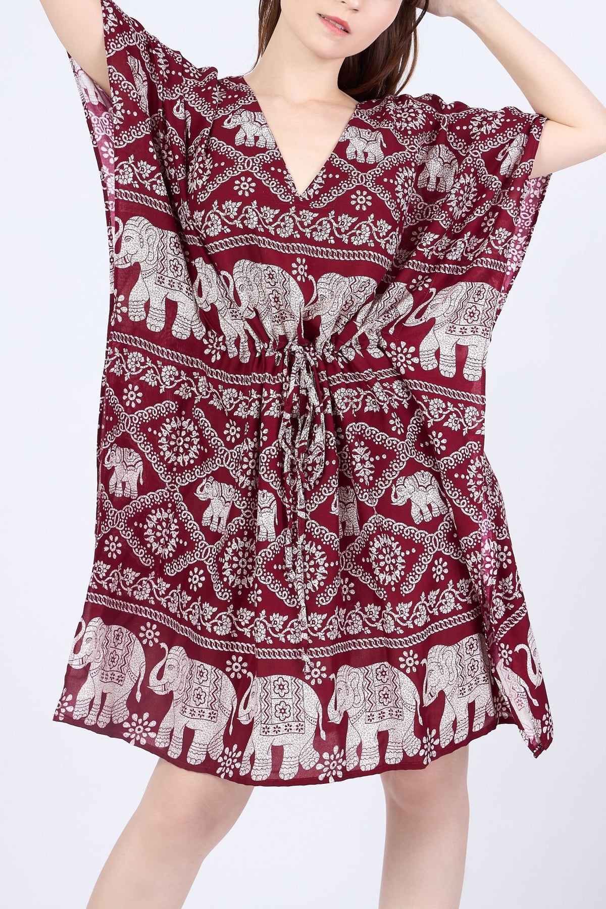 Rayon Boho Tops Dress Kimono - Burgundy Elephant - Lannaclothesdesign Shop