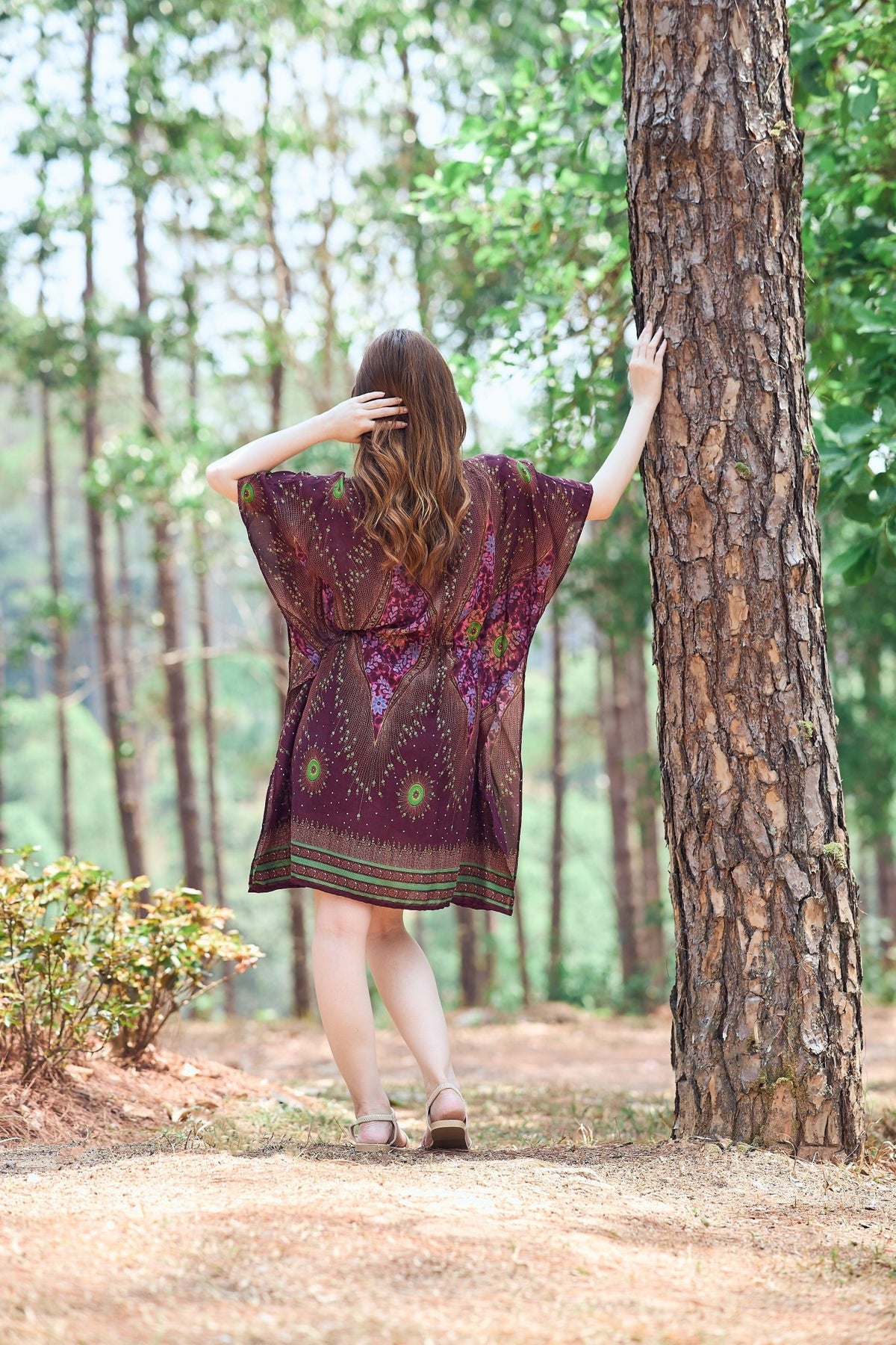 Rayon Boho Tops Dress Kimono - Burgundy Flower Eye