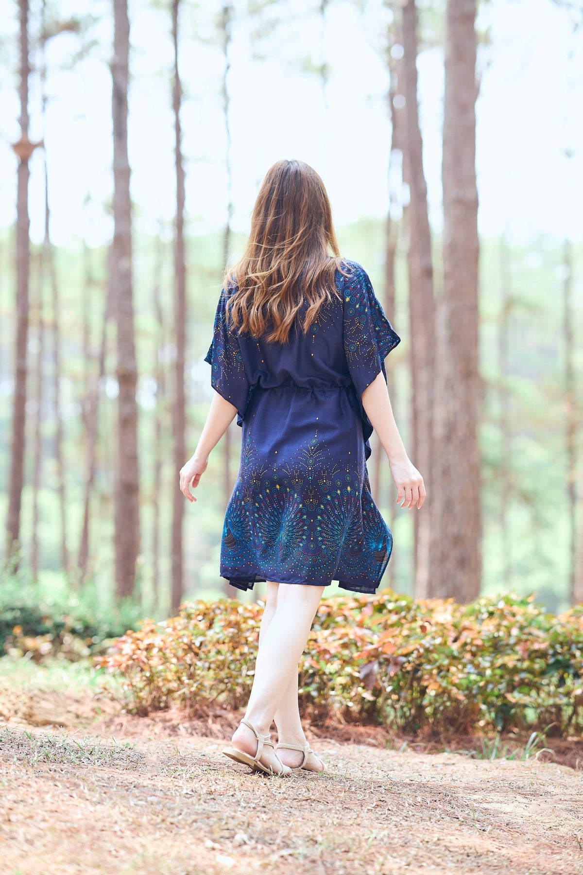 Rayon Boho Tops Dress Kimono - Dark Blue Firework - Lannaclothesdesign Shop