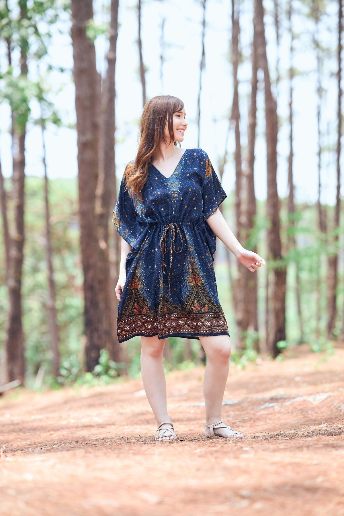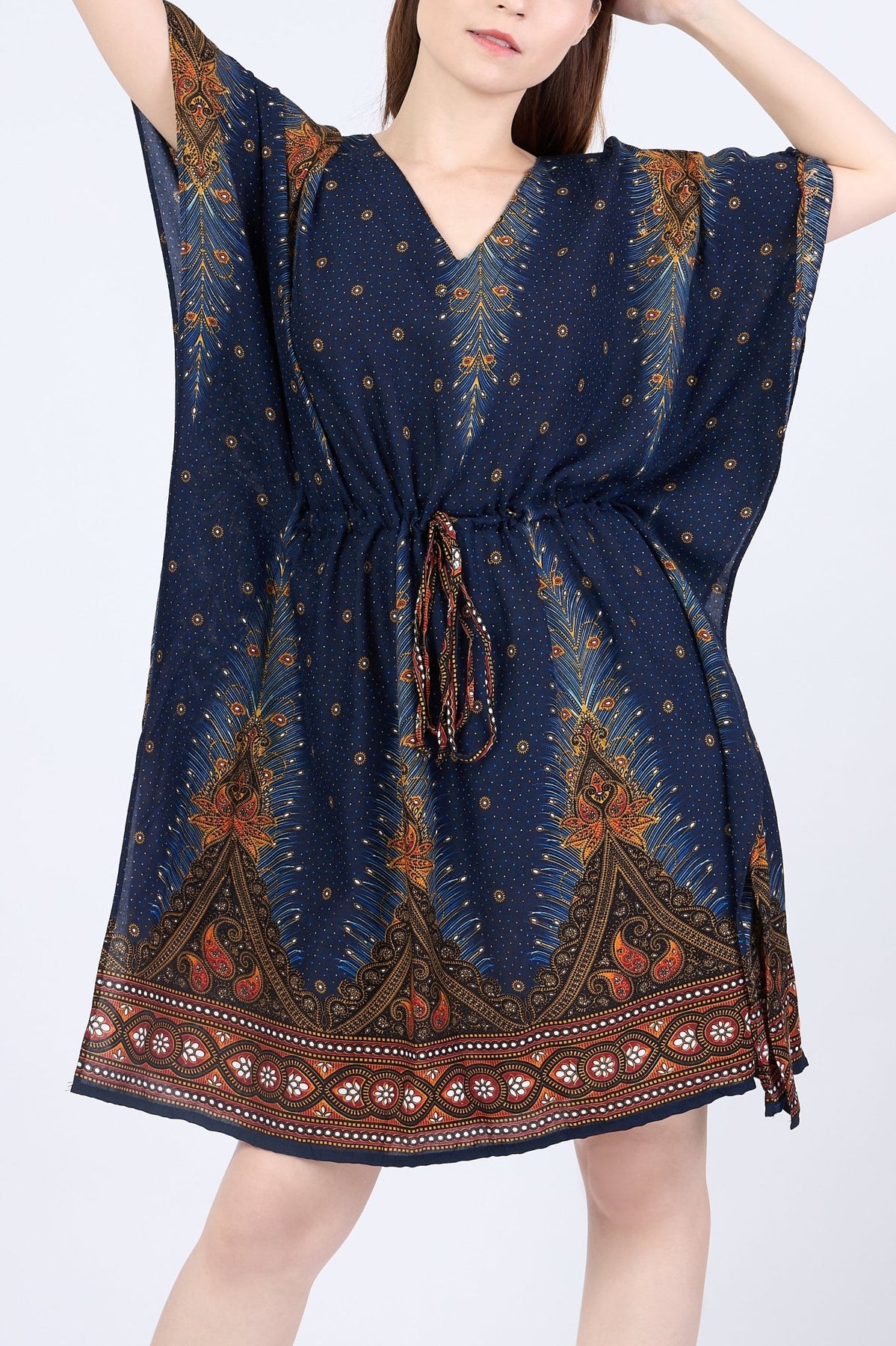 Rayon Boho Tops Dress Kimono - Dark Blue Peacock